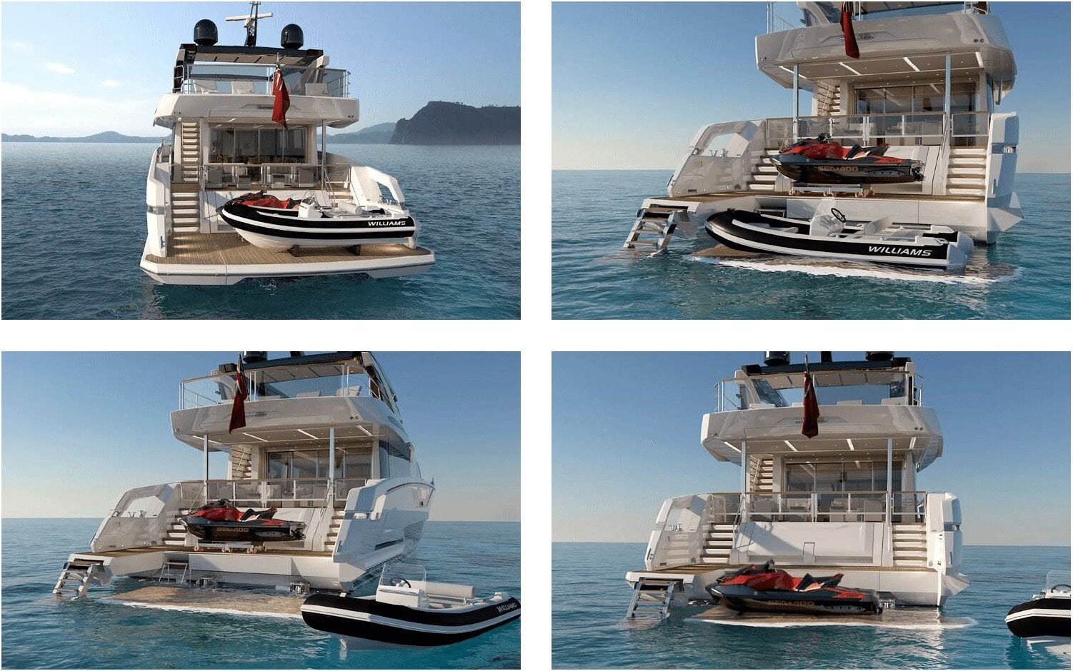 - אזור ביץ קלאב גדול ומרווח, בגודל של 26 מטרים רבועים (פי 4 מכל יאכטה בסדר גודל דומה), 2 מיטות שיזוף גדולות, עמדת בברביקיו ופלטפורמת רחצה הידראולית. כל זה מושלם ל”רביצה” קרוב למים,עם משפחה וחברים.
