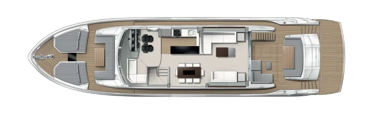 ב-flybridge, יש ג'ט-סקי ומנוף כדי להשלים את תחושת הסופר-יאכטה. בנוסף, יש שולחן חשמלי הניתן להמרה שבלחיצת כפתור ניתן להסב לאזור שיזוף עצום.